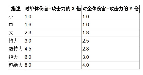 我们可以在角色的普通技能描述中看到类似中、大、特大的字样,下面就给大家介绍一下,这些描述分别代表怎样的威力吧: