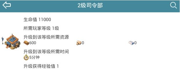 > 海岛奇兵二级司令部详细数据