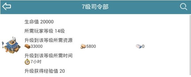 > 海岛奇兵七级司令部详细数据