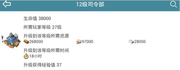 > 海岛奇兵十二级司令部详细数据