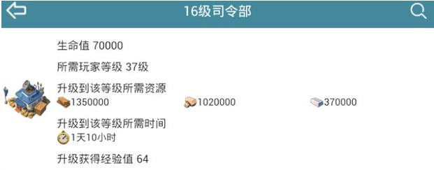 > 海岛奇兵十六级司令部详细数据