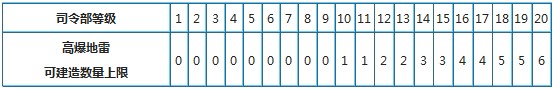 不同等级的司令部,高爆地雷可建造数量也是不同的: