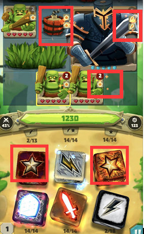 芬兰人普遍认为,天地间居住着无数奇特的生物,而《骰子猎人》的世界观也表达了他们的这种观念。玩家在游戏中,可以捕获爱吓人却又胆小的恶犬,喜欢埋线的黑蜘蛛,超级爱哭的美人鱼,吃货熊猫滚滚等各种奇特生物,并将其装入骰子中,装有奇异生物的骰子会被赋予特殊技能。不过,特殊技能并不能随意被触发,如下图左上角红圈的闪电,就代表了要想使用骰子中的技能,就需要掷出12次闪电的花色。当你只差一个闪电花色,就能使用技能扭转乾坤时,记得一定要祈祷自己关闭了非酋模式哦~