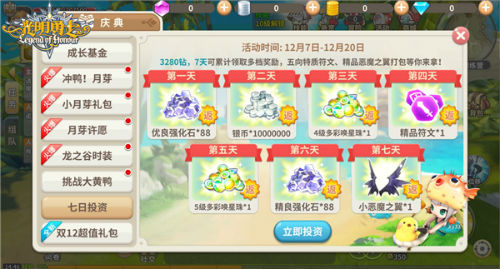喜欢收集时装的萌主大人,全新的Q萌小恶魔之翼时装,你们一定不想错过吧!在活动期间,只需一次性消耗3280钻石,你不仅每天都能够直接领取优良强化石、多彩暴击宝石、紫色特质符文等珍稀道具,更能够在七天后领取小恶魔之翼时装哟!