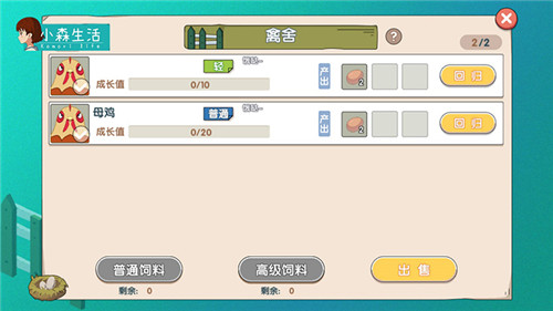 要注意好好照顾牧场中的萌物们,及时添加饲料,饥饿状态下的动物,不会产出材料哦。萌物的体质有普通、健康、强壮的区分,体质越高动物的产出也越高。每次喂养都会提高亲密度,亲密度和稀有道具的产出息息相关。如果你不爱它们了,也可以选择放生……