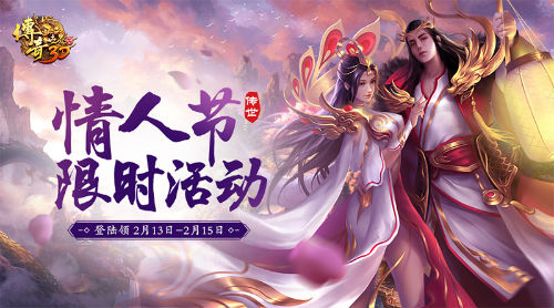 浓浓传世情,豪礼轻松领!《传奇世界3D》铁血柔情过情人节,专属情人节好礼“情人节”现已全面启动,2月13日至2月15日期间,玩家只要登陆,即可获得锻体丹、羽毛、灵粹等超实用豪华道具!除此以外,守护神树、行会神兽等主题活动及行会精英、战场王者、活动总动员等限时活动也将陆续来临,参与活动,元宝、神兽丹等超实用道具、高级羽毛、技能丹、高级灵粹等稀有道具轻松领!
