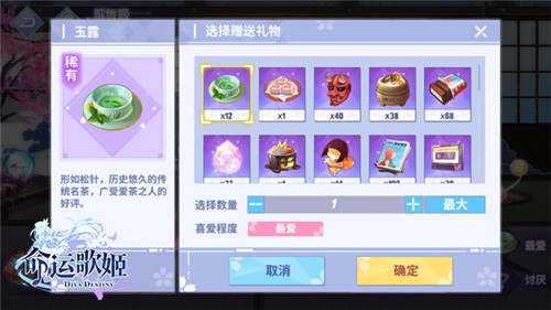 好感度也是羁绊中不可或缺的一环。想要提升歌舞姬的好感度,送礼物就是最直接的方式了。随着好感度的增加,歌舞姬的态度也会逐渐发生改变。从冷淡到亲密,进而结下越来越深刻的羁绊,每突破一个阶段后,歌舞姬的触摸反馈和交互语音都会有所不同。与此同时,好感度越高的歌舞姬,在演出中获得的分数加成也会越高哦!