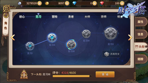 第二,是职衔系统。每一步晋升,都意味着人物属性的一步步攀升。从初心到王者,每一次跃升不光意味着战力的提升,也说明我们从萌新蜕变为大神。